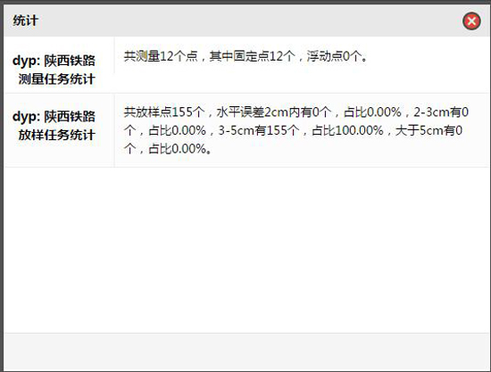 上面這張,就是“統(tǒng)計”功能的效果,怎么樣,放樣成果是否達到要求,一目了然。